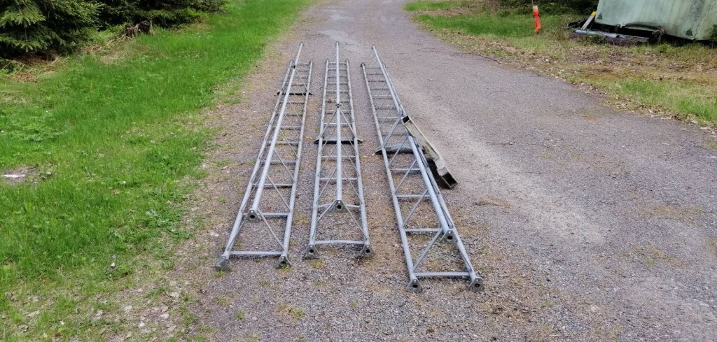Kerholla on myynnissä kolmiomasto, jossa on 3 kpl 6 metrin pituisia osia. Maston hinta on 500 €. Ota yhteyttä mastoon liittyen sähköpostilla oh3aa@sral.fi. Alla on kuvia mastosta.